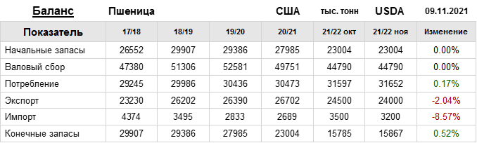 Смотрите также баланс по пшенице на 11 ноября 2021 по Украине