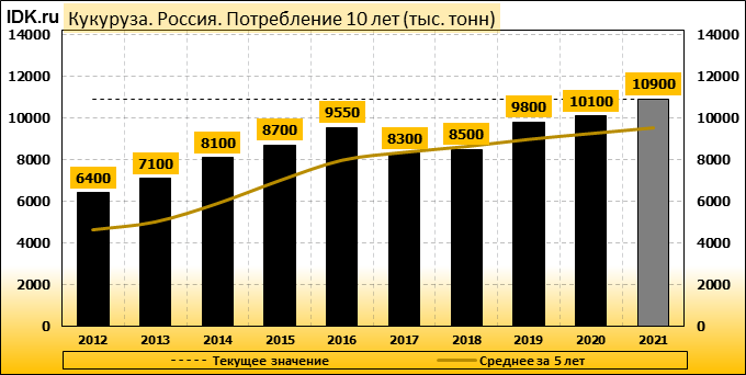 Потребление: показатель не изменился и составляет 10900 тысяч тонн.