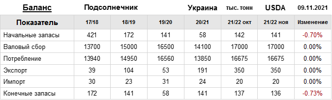 Смотрите также баланс по подсолнечнику на 12 ноября 2021 по ЕС