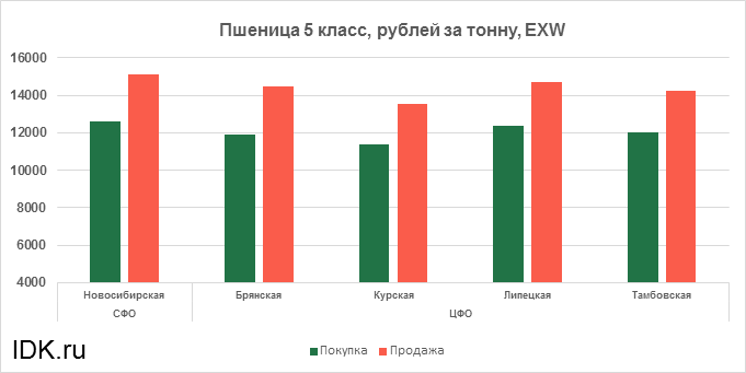 За прошедшую неделю с 08.11.2021 по 12.11.2021 средняя цена на пшеницу 5-го класса, согласно выставленным заявкам трейдеров, выросла по всем округам на 503 рубля. Средняя цена составляет 13490 рублей за тонну.