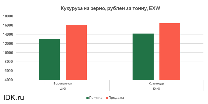 За прошедшую неделю с 08.11.2021 по 12.11.2021 средняя цена кукурузы на зерно, согласно выставленным заявкам трейдеров, упала по всем округам на 361 рубль. Средняя цена составляет 14888 рублей за тонну.