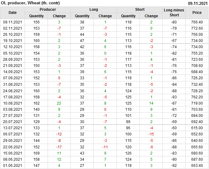 Открытый интерес производителей вырос на 3 тыс. контрактов. Объем контрактов, направленных на хеджирование, составляет 155 827 штук. Деньги производителей в течение прошлой недели приходили на рынок поддерживая тенденцию.