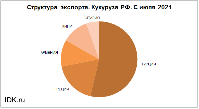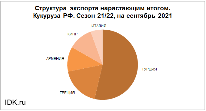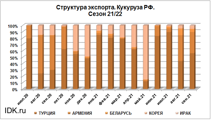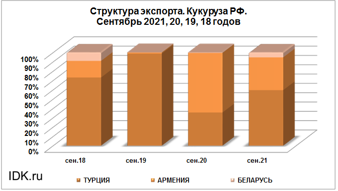 Структура экспорта кукурузы из России за сентябрь 2021 года