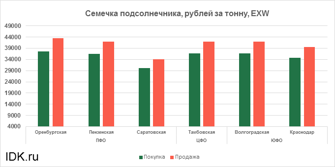 За прошедшую неделю с 15.11.2021 по 19.11.2021 средняя цена семечки подсолнечника, согласно выставленным заявкам трейдеров, выросла по всем округам на 684 рубля. Средняя цена составляет 36248 рублей за тонну.