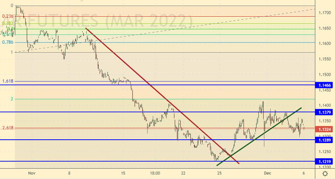 Вероятнее всего до 15 декабря мы будем находиться в диапазоне. В день заседания ФРС и в следующий за ним четверг последует удар вниз к 1.1050, после чего начнется рост пары. Доллар не выглядит абсолютной силой в текущей ситуации. Более того, можно предположить, что различные программы помощи в США (печатание денег) продолжатся и в 2022-м году.