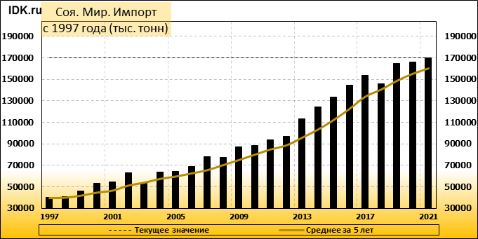 Импорт: составит 169781 тысячу тонн. Значение по прошествии месяца не изменилось.