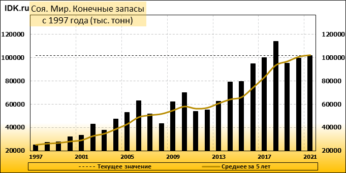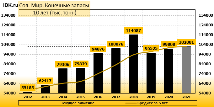 Конечные запасы: составят 102001 тысячу тонн. Оценка с последнего отчета снизилась на -1.72 процента.