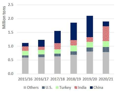 Рисунок 3. Экспорт кукурузного крахмала из Индии