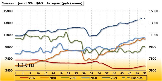 За прошедшую неделю в Центральном федеральном округе внутренние цены на ячмень выросли на 144 руб./т. и на данный момент составляют 14343 рубля за тонну.