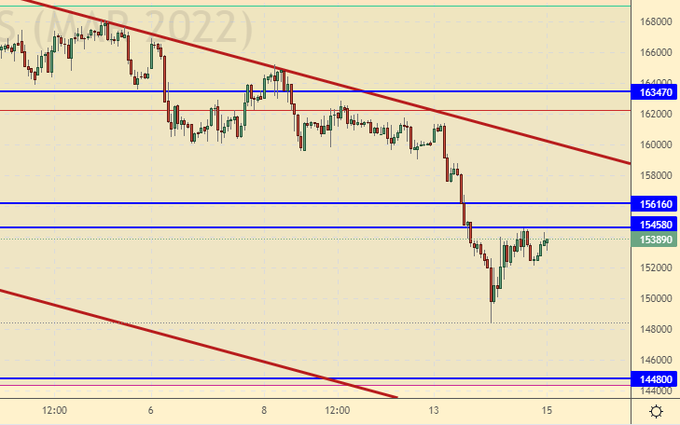 Продажа: сейчас. Стоп: 155200. Цель: 145000. Или при подъеме к 159000. Стоп: 161700. Цель: 145000.
