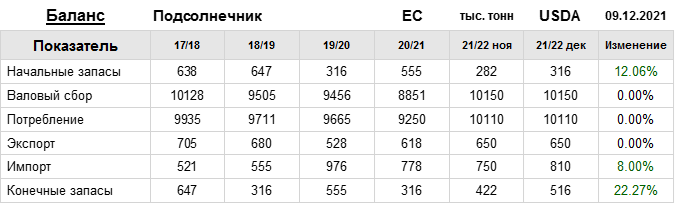 Смотрите также баланс по подсолнечнику на 15 декабря 2021 по Украине