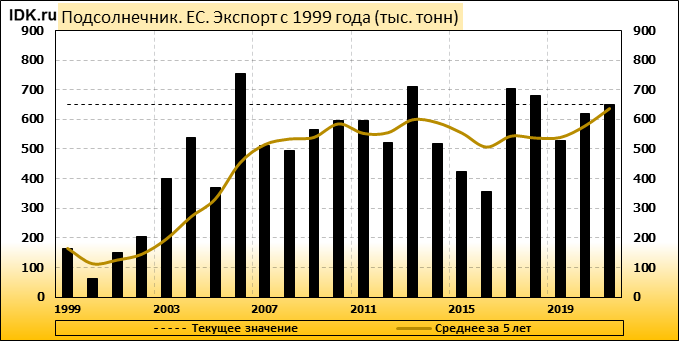 Экспорт: оценивается в 650 тысяч тонн. За месяц показатель не претерпел изменений.