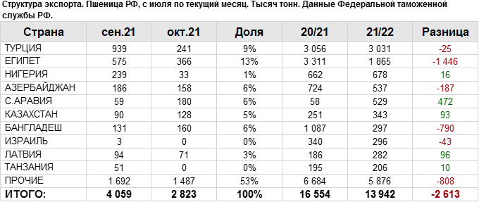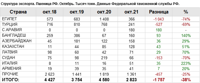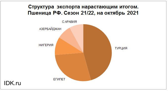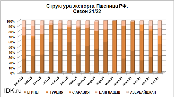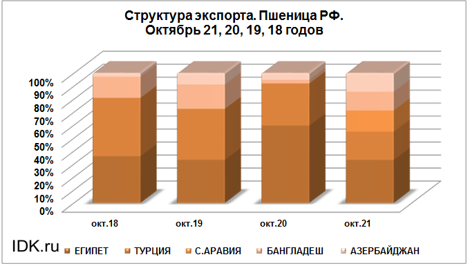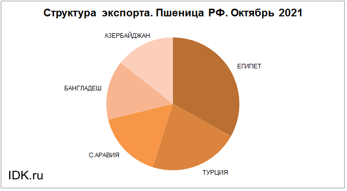 Структура экспорта пшеницы из России за октябрь 2021 года