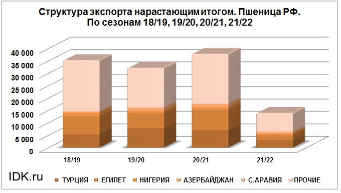 Структура экспорта пшеницы из России нарастающим итогом по сезонам