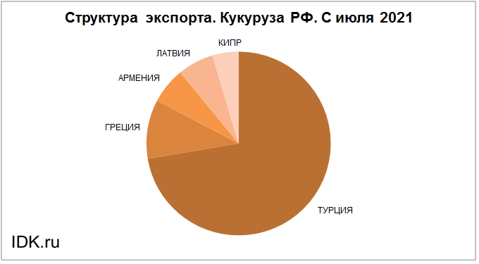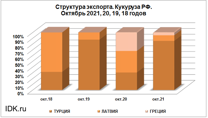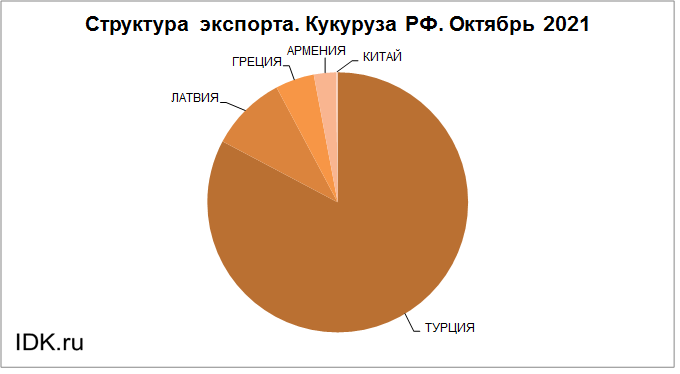 Структура экспорта кукурузы из России за октябрь 2021 года