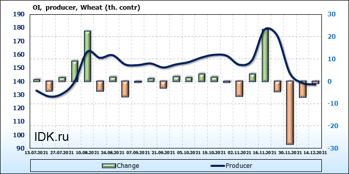 Открытый интерес производителей упал на 1 тыс. контрактов. Объем контрактов, направленных на хеджирование, составляет 137 670 штук. Деньги производителей в течение прошлой недели уходили с рынка не видя привлекательности в текущей ситуации.