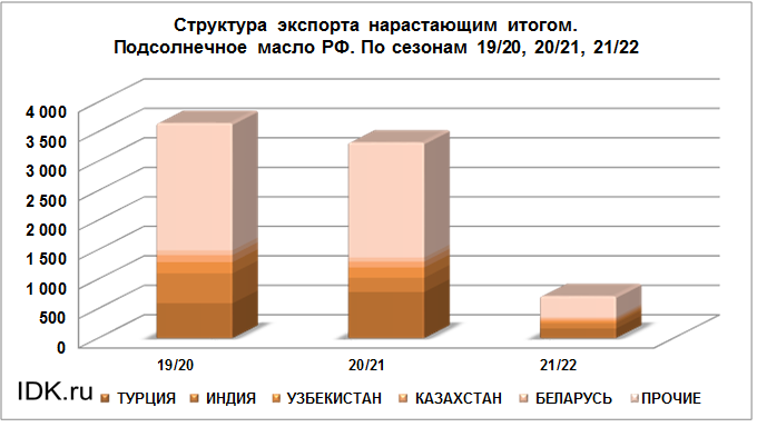 Структура экспорта подсолнечного масла из России нарастающим итогом по сезонам