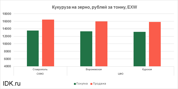 За прошедшую неделю с 20.12.2021 по 24.12.2021 средняя цена кукурузы на зерно, согласно выставленным заявкам трейдеров, упала по всем округам на 136 рублей. Средняя цена составляет 14799 рублей за тонну.