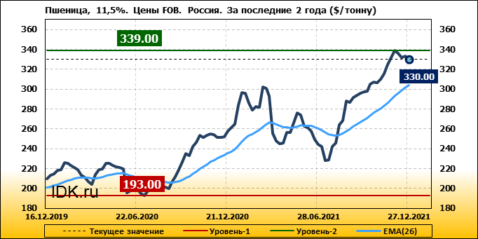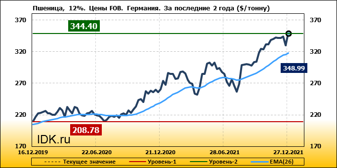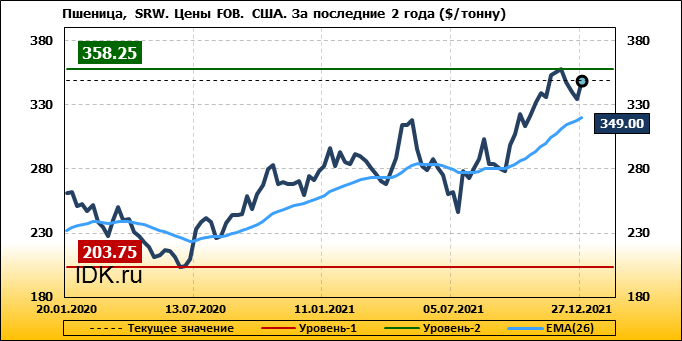 Суровые погодные условия в части пояса выращивания озимой пшеницы в США и засушливые условия в некоторых регионах выращивания кукурузы и сои в Южной Америке будоражили зерновые рынки на прошлой неделе. Рынок пшеницы также оценивает вероятность ограничения экспорта со стороны Украины. Источники сообщили агентству Рейтер, что правительство рассматривает ввод ограничений в первой половине 2022 года. Премьер-министр Украины Денис Шмыгаль заявил в пятницу, что правительство подготовит меры по поддержке отечественных производителей на фоне скачка цен на газ.