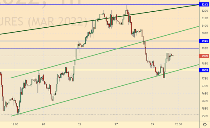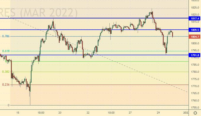 Рынок замрет с 31-го на 1-е в равновесном положении в районе 800.0. В целом страхи по поводу дефицита продовольствия в мире во многом надуманны. Рост цен на удобрения повысит себестоимость производства, в результате чего мы вряд ли увидим пшеницу ниже 500.0 даже при условии тотального изобилия, а если будут сомнения по поводу объемов будущего урожая, то тогда стоит рассчитывать на то, что в среднем цены будут находиться весь 2022-й год как раз в районе 800.0.