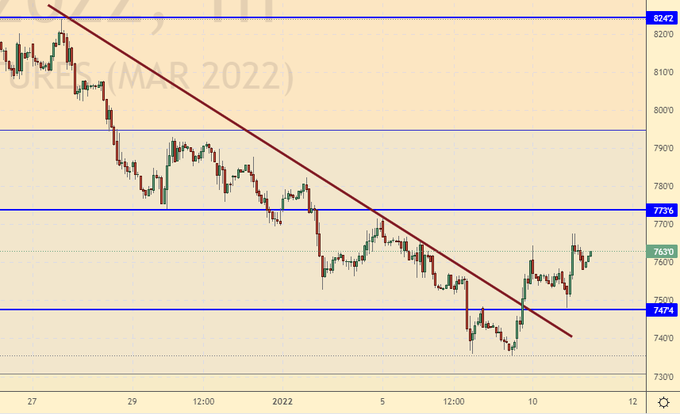 Видим умеренный рост на рынке. Идея посещения уровня 900.0 пока сидит в наших головах. Пока мы не опустились ниже 730.0, будем придерживаться бычьих взглядов на рынок. Страхи по штамму «омикрон» могут подстегнуть рост цен.