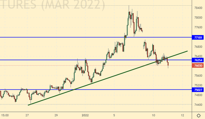 Покупка: сейчас. Стоп: 75400. Цель: 82000. Кто в позиции от 76600, держите стоп на 75400. Цель: 82000.