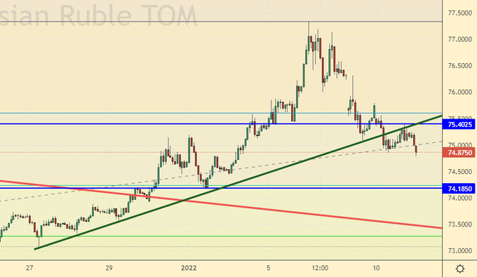 Вчерашние переговоры между Россией и США в Женеве скандалом не закончились, что уже хорошо. Именно этот «позитив» рубль отыгрывает сегодня ранним утром. Мы способны отойти к 74.50 достижение более низких уровней пока поставим под вопрос.