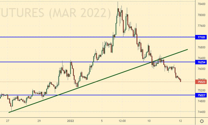 Покупка: сейчас. Стоп: 75300. Цель: 82000. Кто в позиции от 76600 и 76000, перенесите стоп на 75300. Цель: 82000.