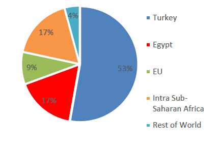Рисунок 4. Импорт пшеничной муки в страны Африки к югу от Сахары из Турции, Египта и ЕС