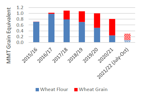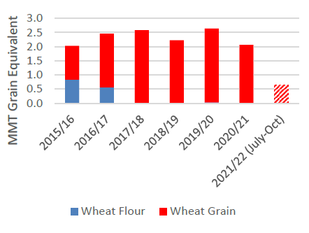 Рисунок 5. Импорт зерна пшеницы и пшеничной муки в Судан