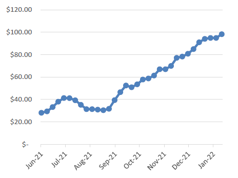 Рисунок 2. Динамика международных экспортных цен FOB.