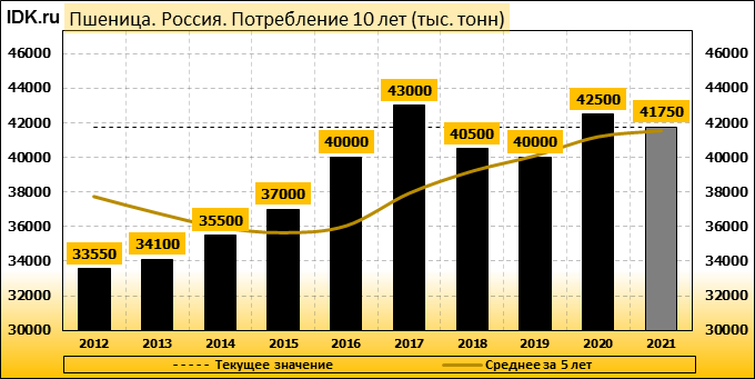Потребление: показатель не изменился и составляет 41750 тысяч тонн.