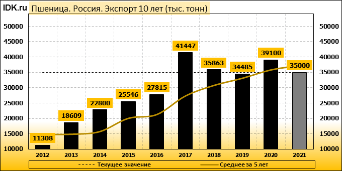 Экспорт: оценивается в 35000 тысяч тонн. За месяц показатель упал на -2.78 процента.