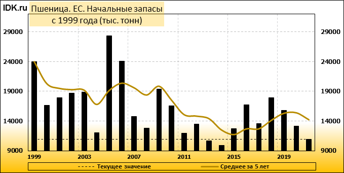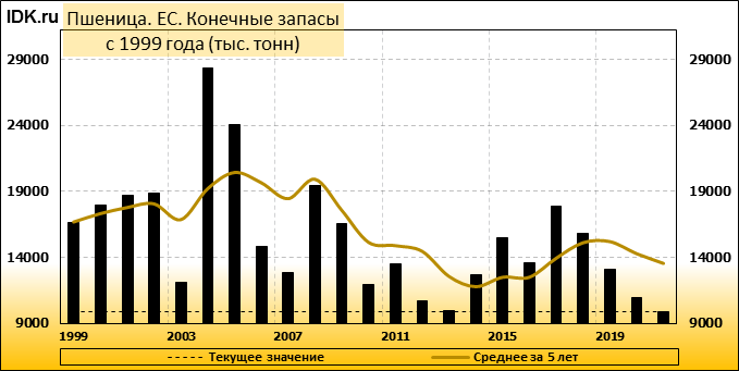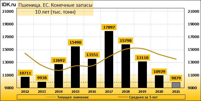 Конечные запасы: составят 9879 тысяч тонн. Оценка с последнего отчета снизилась на -0.5 процента.