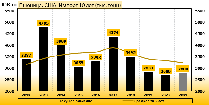 Импорт: составит 2800 тысяч тонн. Значение по прошествии месяца упало на -6.67 процента.