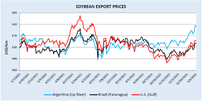 Декабрьские цены на сою в США выросли из-за неблагоприятной погоды в Южной Америке. Цены на сою в Аргентине и Бразилии также выросли из-за сокращения запасов и нежелания фермеров продавать в Аргентине. Прирост цен в Бразилии был меньше, чем в других странах, по причине приближения сбора урожая.