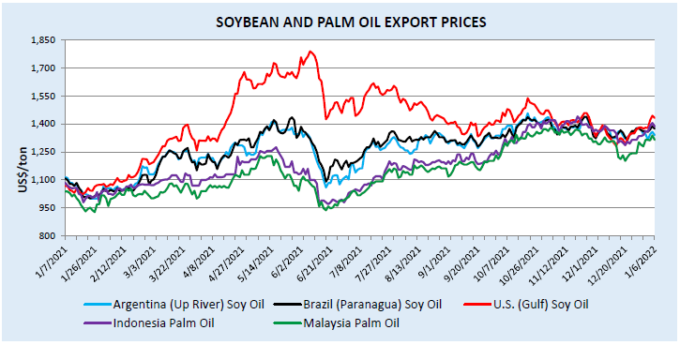 Экспортные цены на соевое и пальмовое масло в декабре 2021 г.