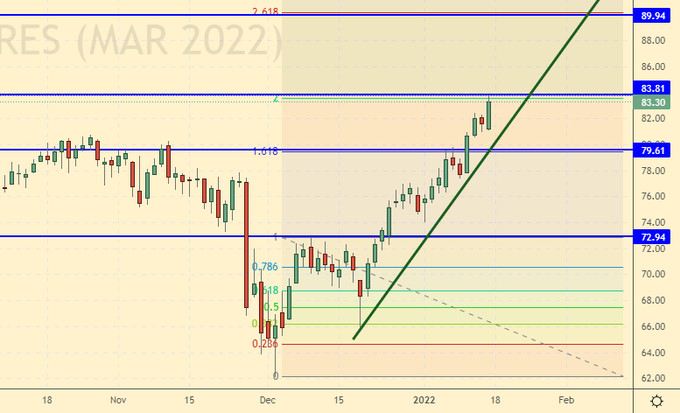Сценарий падения: что будет делать Москва после того, как ей на следующей неделе на весь мир откажут в субъектности, вот в чем вопрос. И ответа ни у кого нет. Будем надеяться, что он есть у стратегов, затеявших в декабре историю с публичным ультиматумом Западу. А так как планы правительства нам не известны, то смотрим на техническую картинку, а по ней только шорт. Значит, будем продавать.