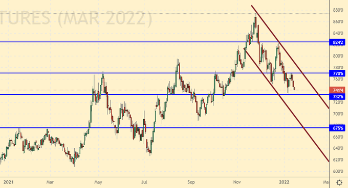 Страсти по «омикрону» отошли на второй план так как болезнь переносится легче, чем в случае с первоначальным вирусом COVID-19. Страх возможных локдаунов покинул рынок, что позволит ценам в перспективе несколько снизится, однако, мы не ждем возврата рынка зерновых к уровням 2019-го года, даже на фоне хорошего урожая в 2022-м году, так как ФРС США, судя по всему, решила плавно девальвировать доллар.