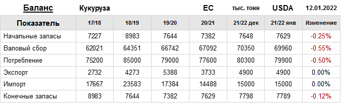 Смотрите также баланс по кукурузе на 17 января 2022 по России
