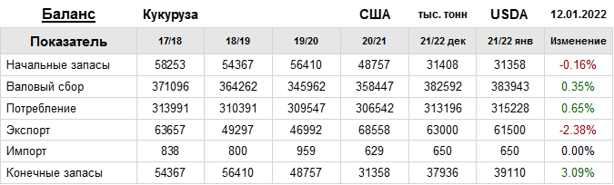 Смотрите также баланс по кукурузе на 17 января 2022 по России