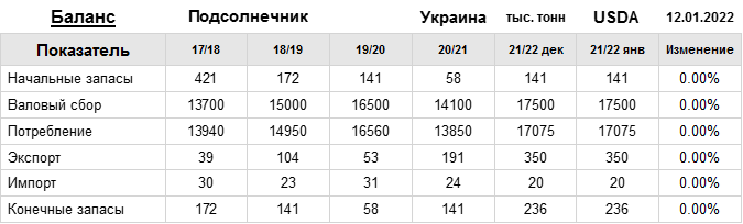 Смотрите также баланс по подсолнечнику на 18 января 2022 по ЕС