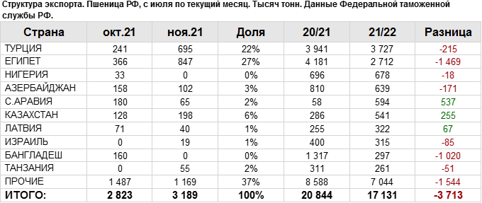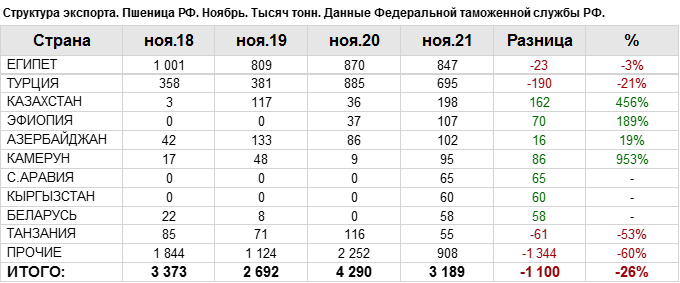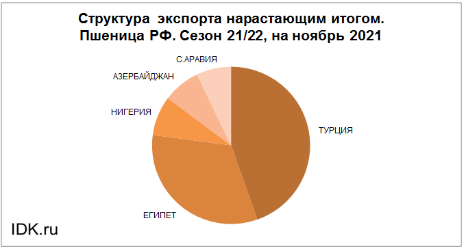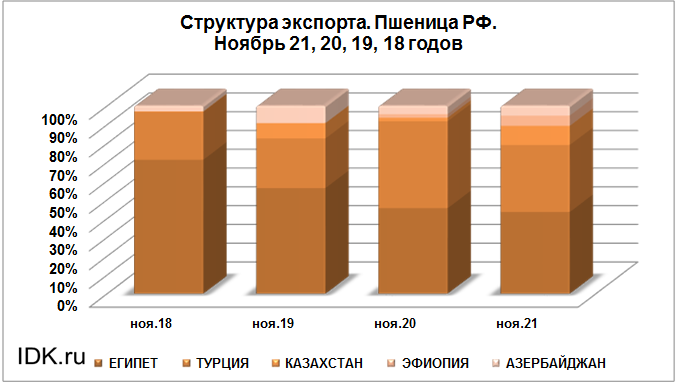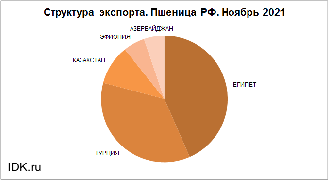 Структура экспорта пшеницы из России за ноябрь 2021 года