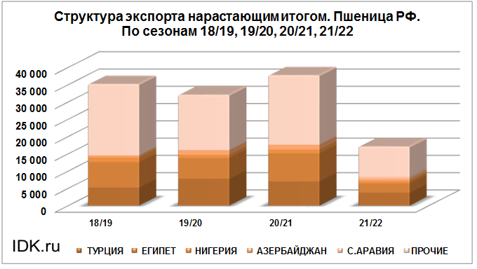 Структура экспорта пшеницы из России нарастающим итогом по сезонам