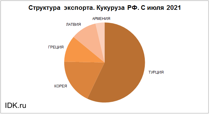 Структура экспорта кукурузы из России с июля 2021