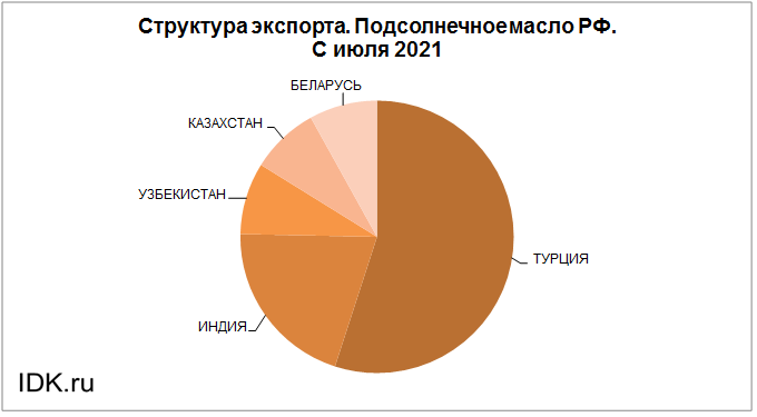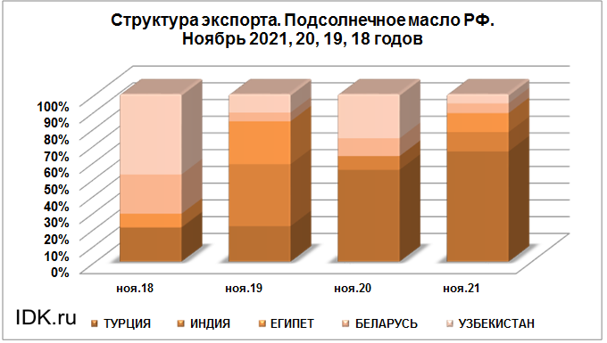 Структура экспорта подсолнечного масла из России за ноябрь 2021 года