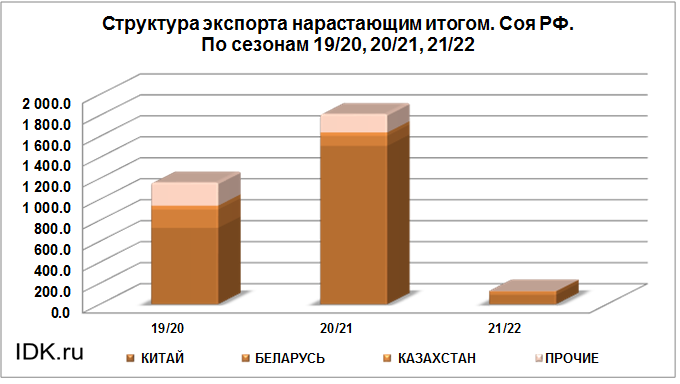 Структура экспорта сои из России нарастающим итогом по сезонам