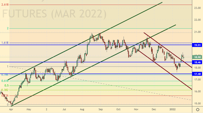 Сценарий роста: рассматриваем мартовский фьючерс, дата экспирации 28 февраля. После покупки от 17.50 держим лонги. Рассчитываем на возврат к уровню 20.00, возможно, что пойдем и выше.