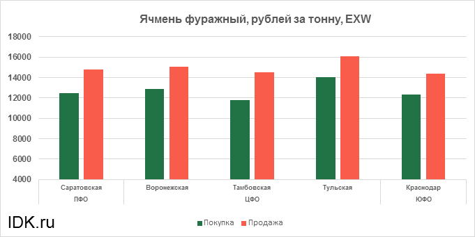 За прошедшую неделю с 17.01.2022 по 21.01.2022 средняя цена на фуражный ячмень, согласно выставленным заявкам трейдеров, упала по всем округам на 179 рублей. Средняя цена составляет 13461 рубль за тонну.
