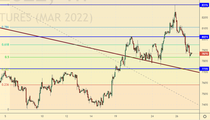 Видим откат. При подходе к 770.0 можно будет или войти в лонг, или докупить. По Европе и по Канаде ходят орды возмущенных граждан, которые требуют перестать их вакцинировать. Под давлением тысячных толп правительства могут закрывать глаза на рост числа заражений. И так будет продолжаться до тех пор, пока клиники вновь не окажутся переполненными. Это серьезный системный риск: хорошую мину при плохой игре будут держать как можно дольше.